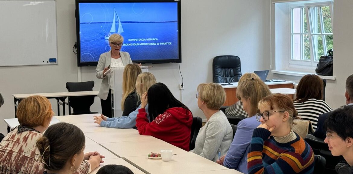 Centrum Mediacji Szkolnej i Edukacji Prawnej im. Kamili Wyrębskiej miało zaszczyt uczestniczyć w konferencji “Kompetencje przyszłości młodych adeptek i adeptów prawa”, która odbyła się 2 października 2024 w II Liceum Ogólnokształcącym w Inowrocławiu. Podczas wystąpienia koordynator Centrum pani Anna Wiśniewska przedstawiła działalność kółka mediatorów rówieśniczych w Zespole Szkół nr 24 w Bydgoszczy, a także zakres działań naszego Centrum.