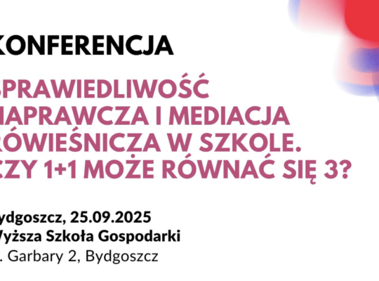 W dniach 20–22 stycznia 2026 roku w murach Zespołu Szkół nr 24 w Bydgoszczy odbyło się szkolenie dla przyszłych mediatorów szkolnych oraz opiekunów kół mediacji rówieśniczych. Zajęcia poprowadziła pani Katarzyna Stryjek z Polskiego Centrum Mediacji, Oddział w Trójmieście. Przez trzy dni nauczyciele rozwijali swoje kompetencje w zakresie budowania porozumienia oraz prowadzenia mediacji szkolnych i rówieśniczych.