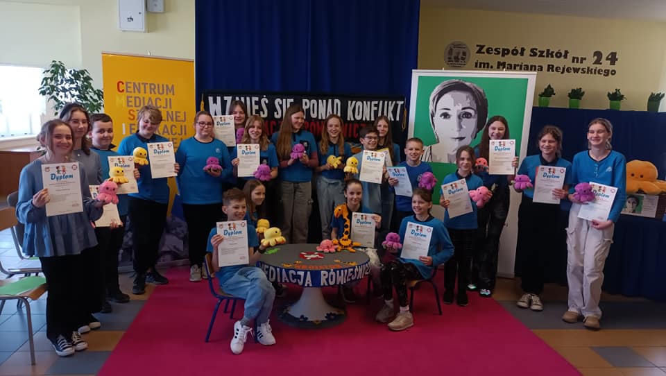 Na kolejnym etapie kursu mediatora rówieśniczego uczniowie pracowali nad świadomością emocji w sytuacji trudnej/konfliktowej. Uczyli się technik kontroli i umiejętności panowania nad emocjami własnymi i stron konfliktu. Tę część szkolenia przeprowadziła pani dr Ewa Sygit Kowalkowska – przyjaciel Centrum Mediacji Szkolnej i Edukacji Prawnej im. Kamili Wyrębskiej. Serdecznie dziękujemy za dodanie mediatorom rówieśniczym mediacyjnych skrzydeł! …